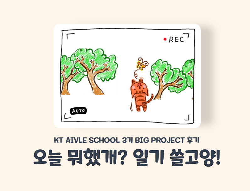 우리 조의 빅프로젝트 주제는, "반려동물 행동/감정 분석을 통한 반려동물 시점에서의 일기 생성 서비스" 였다. 이미 GPT를 활용하여 일기를 생성하는 서비스는 종종 찾아볼 수 있었는데, 이런 서비스와의 차별화를 주기 위한 부분은 "반려동물 시점의 일기 생성"이었다. 대부분 일기 생성 서비스는 주어진 영상, 사진에 따라서 그 사실 자체를 서술하는 게 주 기능이었지만 우리는 반려동물의 성격과 일기에 작성하고자 하는 내용을 종합적으로 반영한다는 차이점이 있다. 서비스 이름인 오늘뭐했개? 일기쓸고양!은 사실 내 아이디어다 음하하 개와 고양이가 모두 들어간 서비스명을 짓고 싶어서 고민하다 나온 이름인데 유치하지만 나름 기억에는 남을만한 것 같다 😋