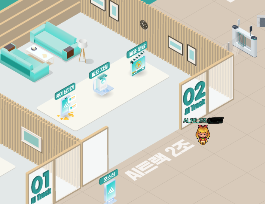 빅프로젝트 발표회는 메타버스에서 이루어졌다. 메타버스를 통한 발표회라니 뭔가 낯설기도 했지만 실제로 내부도 너무 잘 꾸며져 있었고, 다른 조들의 산출물을 구경하는 것도 너무 재밌었다! 또한 보물찾기 미니 이벤트도 있어서 보물 찾는다고 그 안을 얼마나 뛰어다녔는지 모르겠다 후후 특히 너무 좋았던 것 중에 하나는 각 조마다 관람 후기를 남길 수 있는 게시판이 있었는데, 발표회가 마무리된 후 우리 조 후기들을 쭉 읽어보니까 반려동물을 대상으로 한 서비스기에 반려동물을 실제로 키우시는 분들이 직접 우리 서비스를 이용한 결과를 공유해주기도 하셨다. 이렇게 직접 사용해 보신 분들이 좋은 후기를 남겨주신 걸 보면서 정말 뿌듯했었다.