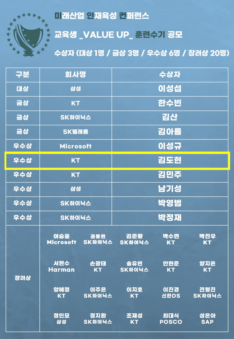 [우수상] 미래산업 인재육성 컨퍼런스 교육생 "VALUE UP" 훈련수기 공모전 참여 후기