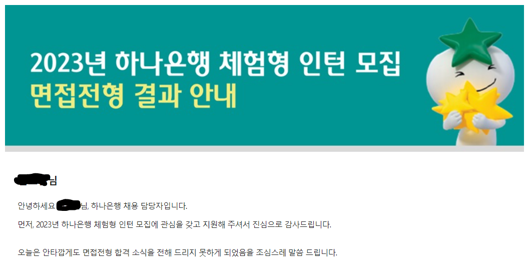 [인턴] 2023년 하나은행 체험형 인턴 디지털부문 면접 탈락 후기