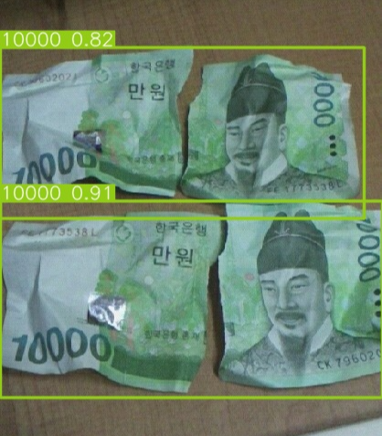 데이터 전처리한 내용을 바탕으로, 다양한 YOLO 모델을 학습시켜 본 후 실제 test 이미지 속에서 화폐를 얼마나 인식하는지 확인하고 여러 가지 결론을 내었다. 나는 YOLOv5s모델을 사용하여 학습을 진행하였고, 이번에 학습 과정에서 GPU도 사용하니까 확실히 학습시간에 많은 시간이 소요되지 않았다. 자본주의의 힘 💵͜ (^ ̮ ^)› 조원들과 각자 다른 모델을 돌려보고, 같은 test 이미지에 대해 모델이 어떤 결과를 냈는지 모아서 확인해 봤는데 너무 흥미롭고 재밌었다. 이틀간 진행했던 두 번째 프로젝트는 팀원들 간의 내용 분배도 굉장히 잘 되었고, 다양한 모델을 한 번에 비교해 보고 그를 통한 분석 결과를 도출해 내는 과정이 보람찼다.